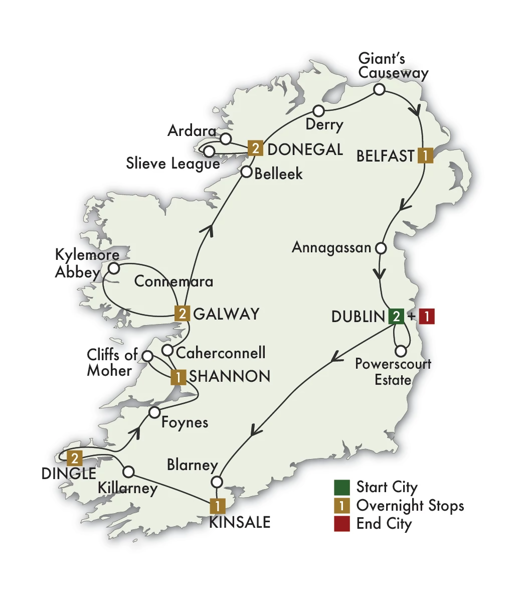 Meet with a local guide for a walking tour to see Derry’s medieval walls, the Diamond, and St Columb’s Cathedral. Explore the Giant’s Causeway, enormous hexagonal columns formed over 60 million years ago. Travel along the scenic Nine Glens of Antrim before arriving in Belfast. Your evening will be free to explore and dine independently in this vibrant city. (B)