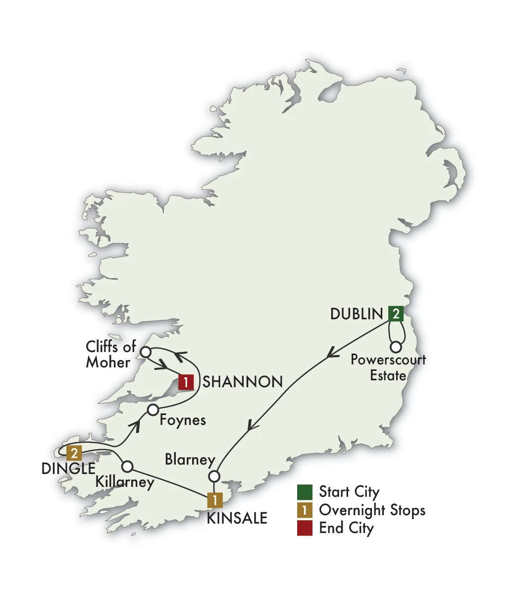 Set out on the Slea Head Loop, one of Ireland’s most beautiful drives, through scenic ocean and mountain vistas. Visit the Blasket Centre in Dunquin to learn about the Blasket Islands, visible off the coast. These islands were a lively outpost of the Irish language before being abandoned in 1954, and their legacy lives on. Return to Dingle and visit Murphy’s Ice Cream; taste their distinctive flavors like Irish Orange Marmalade, Brown Bread, and Dingle Gin. Take the rest of the day to wander and dine as you wish in this quaint seaside town.