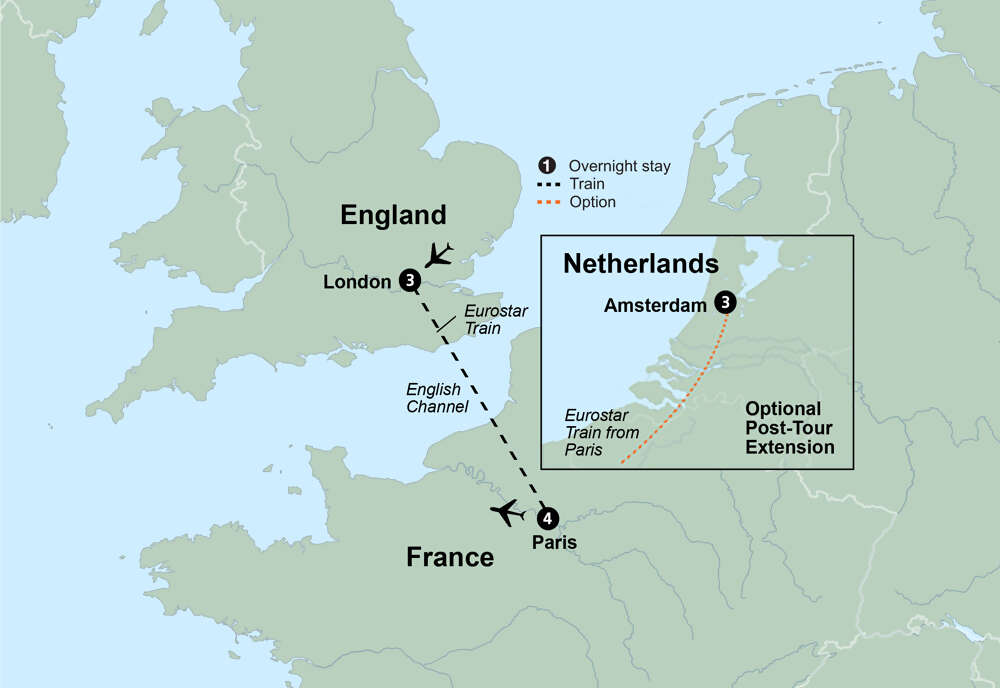 From cosmopolitan London to romantic Paris, see the best of the world's most captivating cities. To help make the most of your getaway, unpack just once in each city. Enjoy a leisurely-paced journey with plenty of time for independent exploration.
