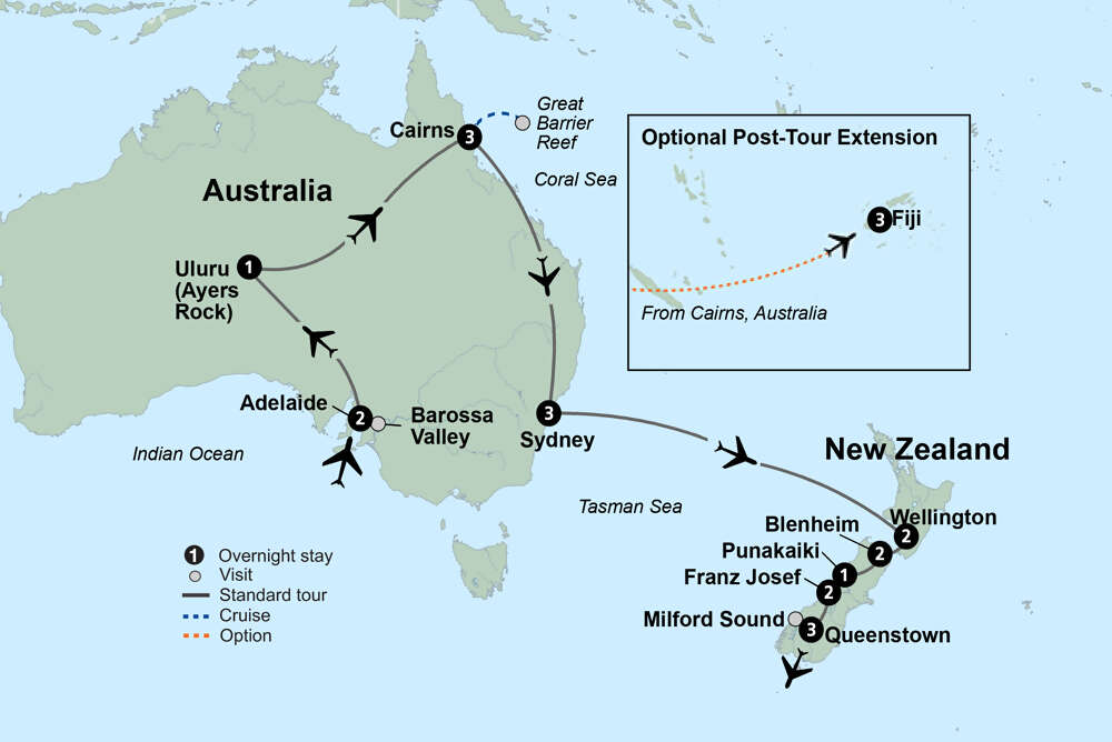 From Uluru's glowing sunset and the Great Barrier Reef, to Maori traditions, discover Australia and New Zealand's soul-stirring wonders. Savor sparkling wine and canapés at sunset in the Outback, a hangi hangi lunch in Wellington, and vineyard fare in Marlborough. Cruise through Milford Sound's dramatic fjords, explore Sydney's icons, and connect with Aboriginal and Maori traditions through immersive storytelling and ceremony. With unforgettable culinary moments, wildlife encounters, and walks through rainforests and glaciers, take a journey that celebrates connection, nature and the joy of discovery.