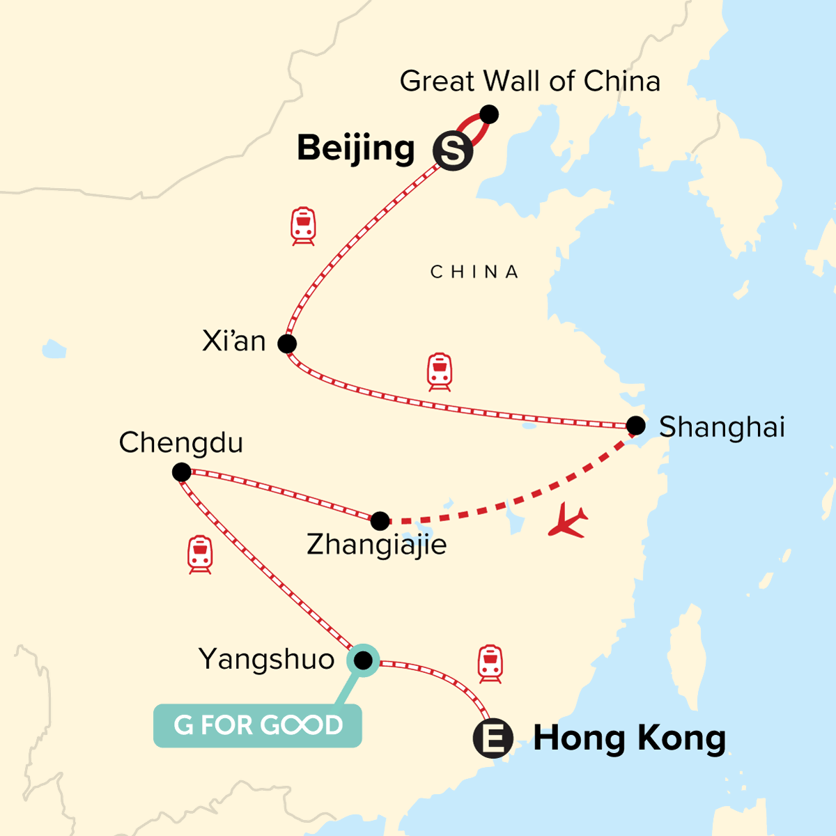 Set off on an immersive adventure through the many faces of China — from ancient marvels and jaw-dropping landscapes to futuristic cities pulsing with energy. Wander through the bright lights of Shanghai and Beijing, then step back in time to witness the mysterious Terracotta Warriors and raise a toast on the Great Wall. Try your hand at Tai Chi and take part in a traditional tea ceremony. Come face-to-face with China’s beloved panda at a national conservation centre. With epic food, big cities, wild nature, and culture everywhere you turn, this is the China journey you’ve been waiting for.
