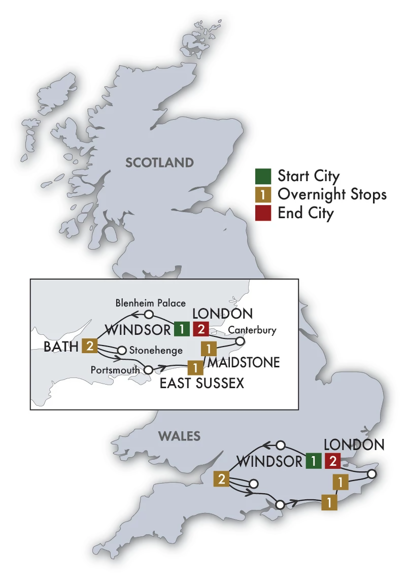 Visit Winchester, where some say the legendary King Arthur had his roundtable. Then, delve into nautical life at Portsmouth Historic Dockyard, where you can step aboard some of Britain’s most notable ships, and see the Mary Rose, King Henry VIII’s favorite. This 16th-century warship was sunk in battle in 1545 but was raised from the seabed after 400 years; it’s now a fascinating time capsule of maritime history, offering insight into the daily life of the era. Head on to your country house hotel and enjoy dinner with your group.
